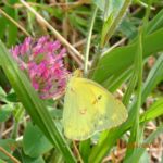 そんな産卵のシーンを見た翌日、一生を終えたオスのモンキチョウの死骸を見つけました。これも一つの出会いでした。これまでに自分が見たチョウの数以上に死んではいるはずですが、不思議とそれ程の数の死骸を見たことはありません、むしろ非常に稀なことです。少なくとも、1mm程度の小さな卵を見つけることよりも格段に難しい。殆ど人には気付かれることなく自然に還って行っているのです。合掌!
