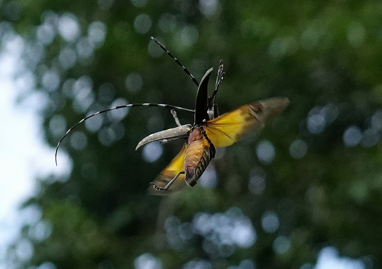 ↓ 久しぶりにキボシカミキリをみつけた。子供の頃はシロスジカミキリと並ぶオオモノ