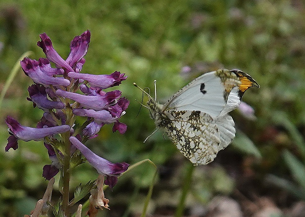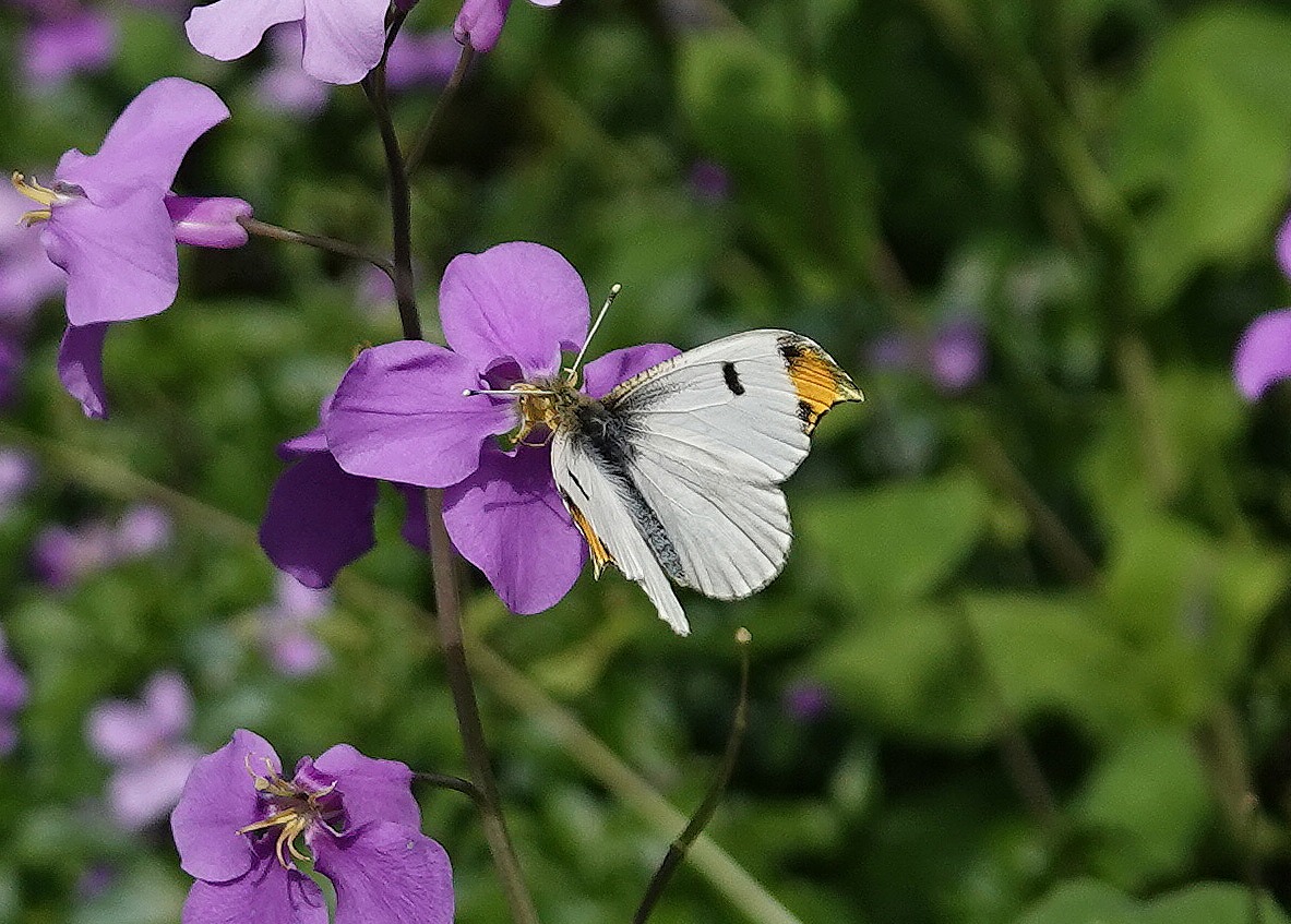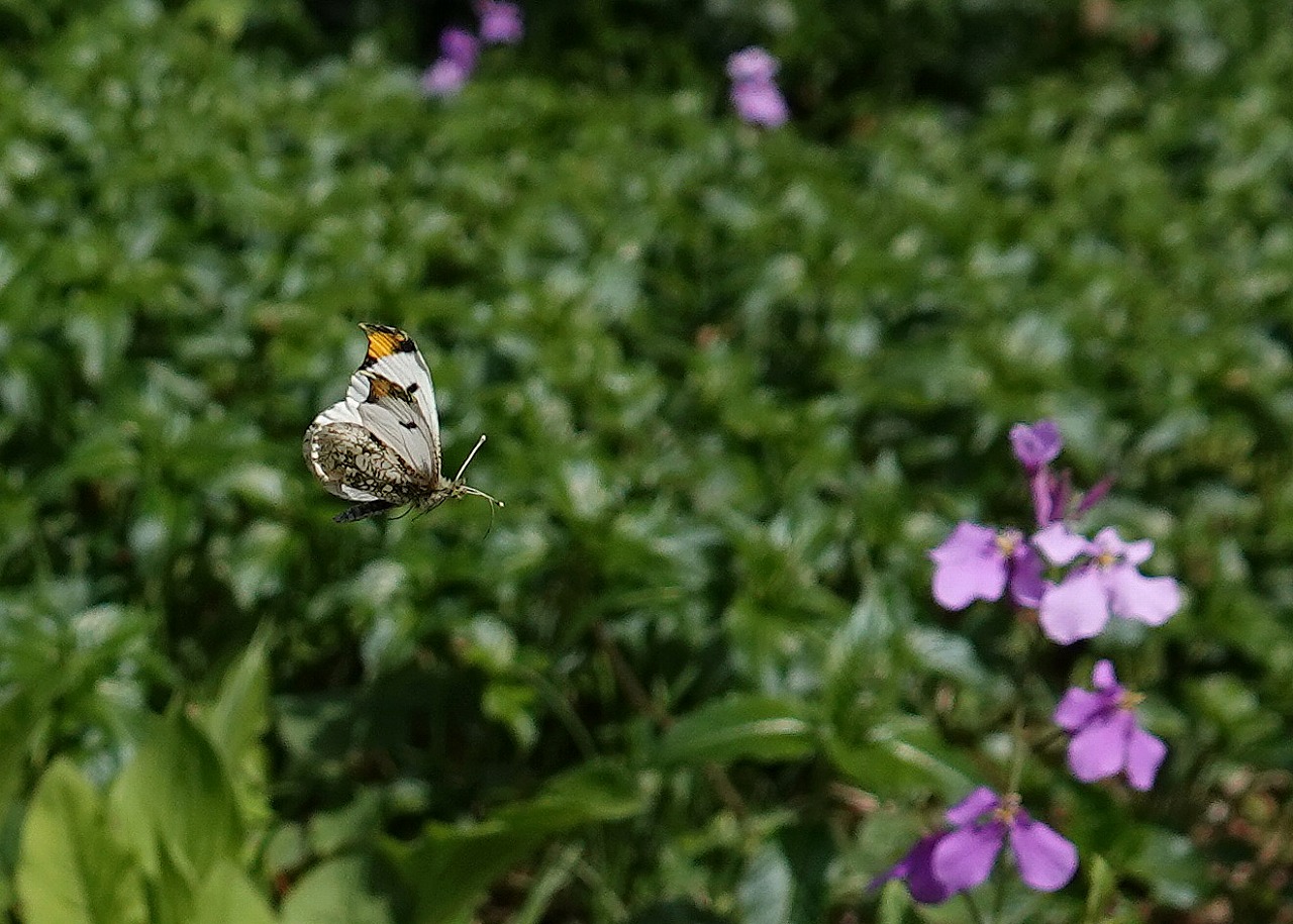 ツマキチョウは他のシロチョウたちに比べると小さめで、また、飛翔力も力強さを感じないよたよたした飛び方をするので遠くからでもすぐにそれとわかる。発生はモンシロチョウやモンキチョウのように年に何度も世代交代せず、この時期一回だけなのでなんとなく愛着が湧く蝶の一つだ。