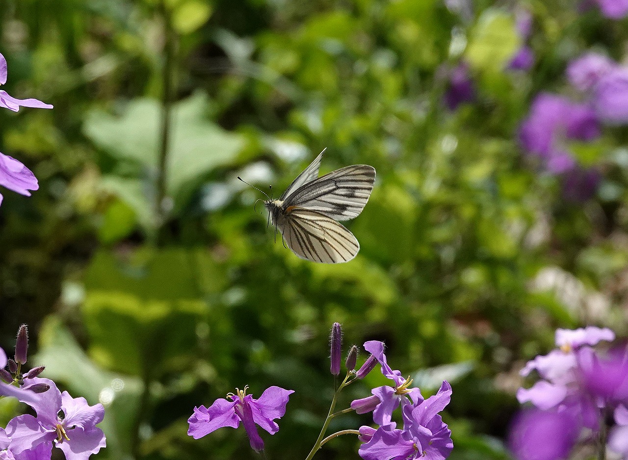 ↓ オオアラセイトウにはスジグロシロチョウも飛来している
