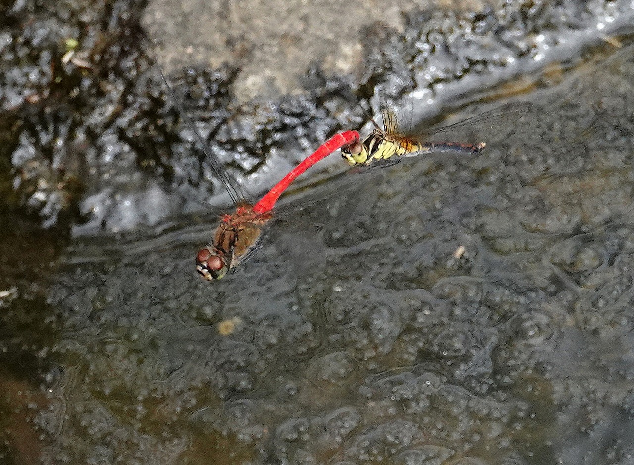 ↓ 産卵開始 ⇒ 10秒弱の短い動画 ショウジョウトンボ産卵