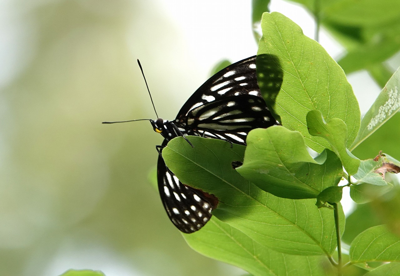 ↓ スミナガシ 位置が高いので美しい翅の表は撮れなかったが、墨流し模様、碧眼、紅口吻は撮れた