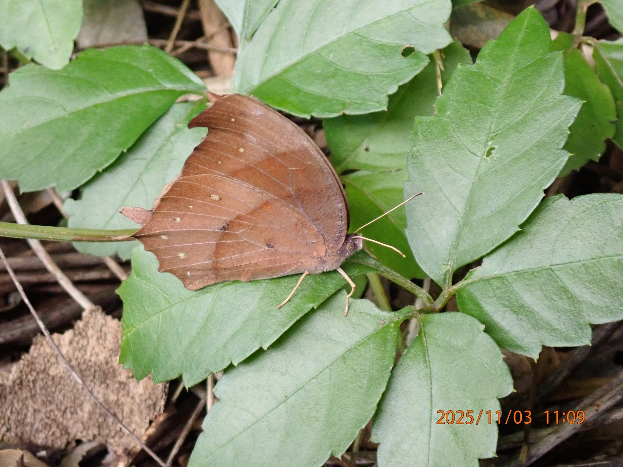 先日、調査のコースを歩いていると、不意に足元からヒラヒラと飛び立ったのがこのクロコノマチョウ、比較的新鮮な個体だ(秋型のメス)。だが、それほどの距離も飛ばずすぐに近くの下草に止まる。そして飛んでいくのは茂みの奥の薄暗い方向なのだ。ともかく、そのあたりでは雌雄とも何度も目撃されているので、どこか近くで確実に繁殖していると思われる。生田緑地ではジュズダマの生えている場所で卵・幼虫・成虫が例年たくさん見られるが、この近辺の多摩川ではジュズダマのある場所はごく一部に限られるが、これまでにそのあたりで幼虫を見たことはない。一体どこで幼虫は育っているのだろう。ジュズダマにこだわらず他のススキなどを食べているのかもしれないが、残念ながらこれまでにまだその姿を見たことがない。