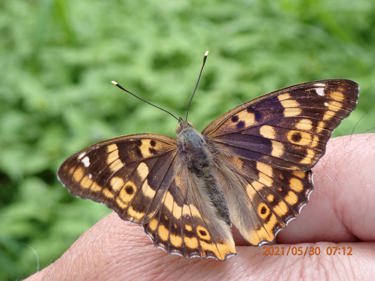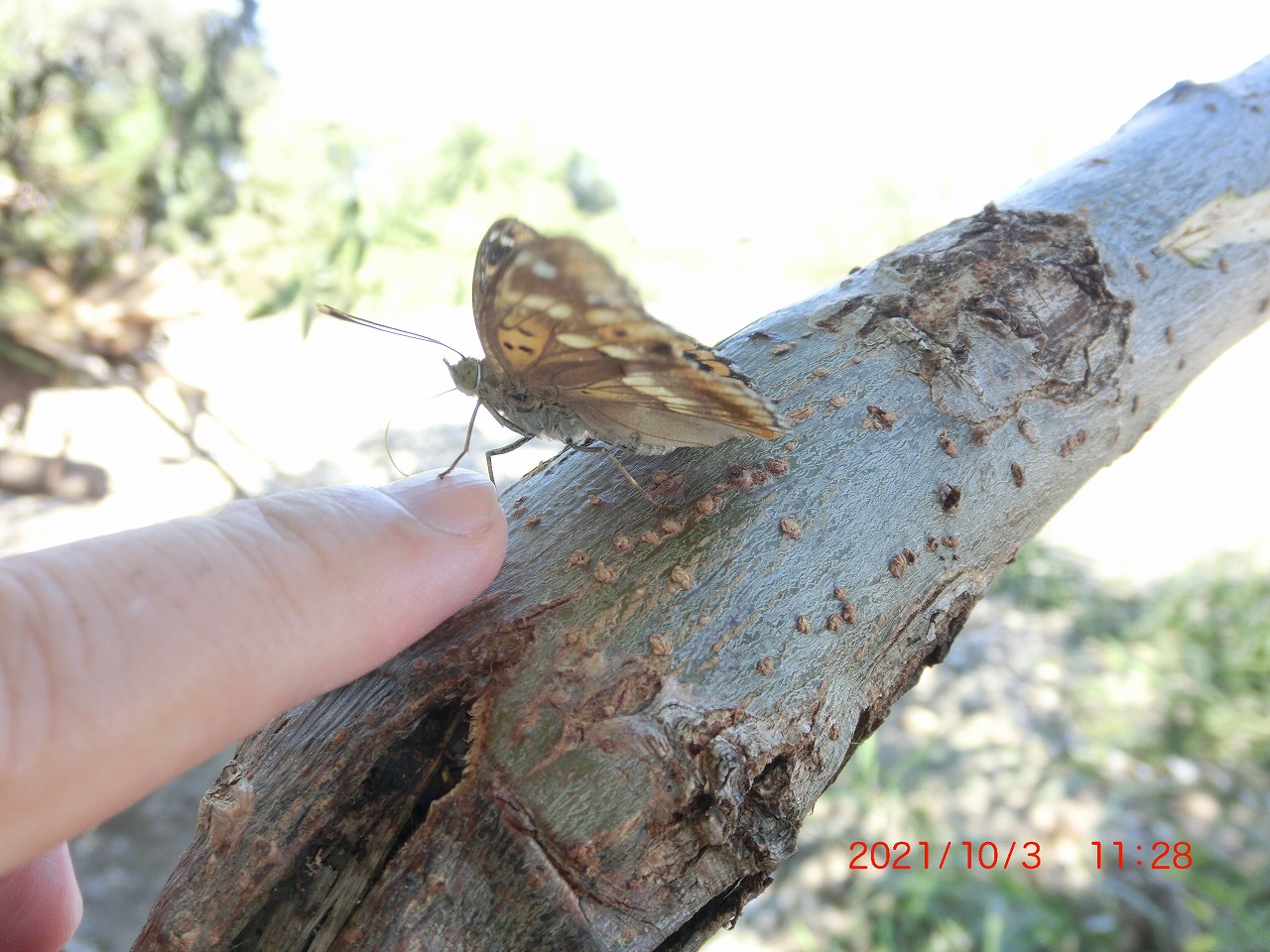 それに味を占めて、その後は多摩川河川敷のヤナギで樹液を吸っているところ見つけ、何度も手乗りしてもらいました(その場所というのは現在越冬幼虫の観察をしているところです)。