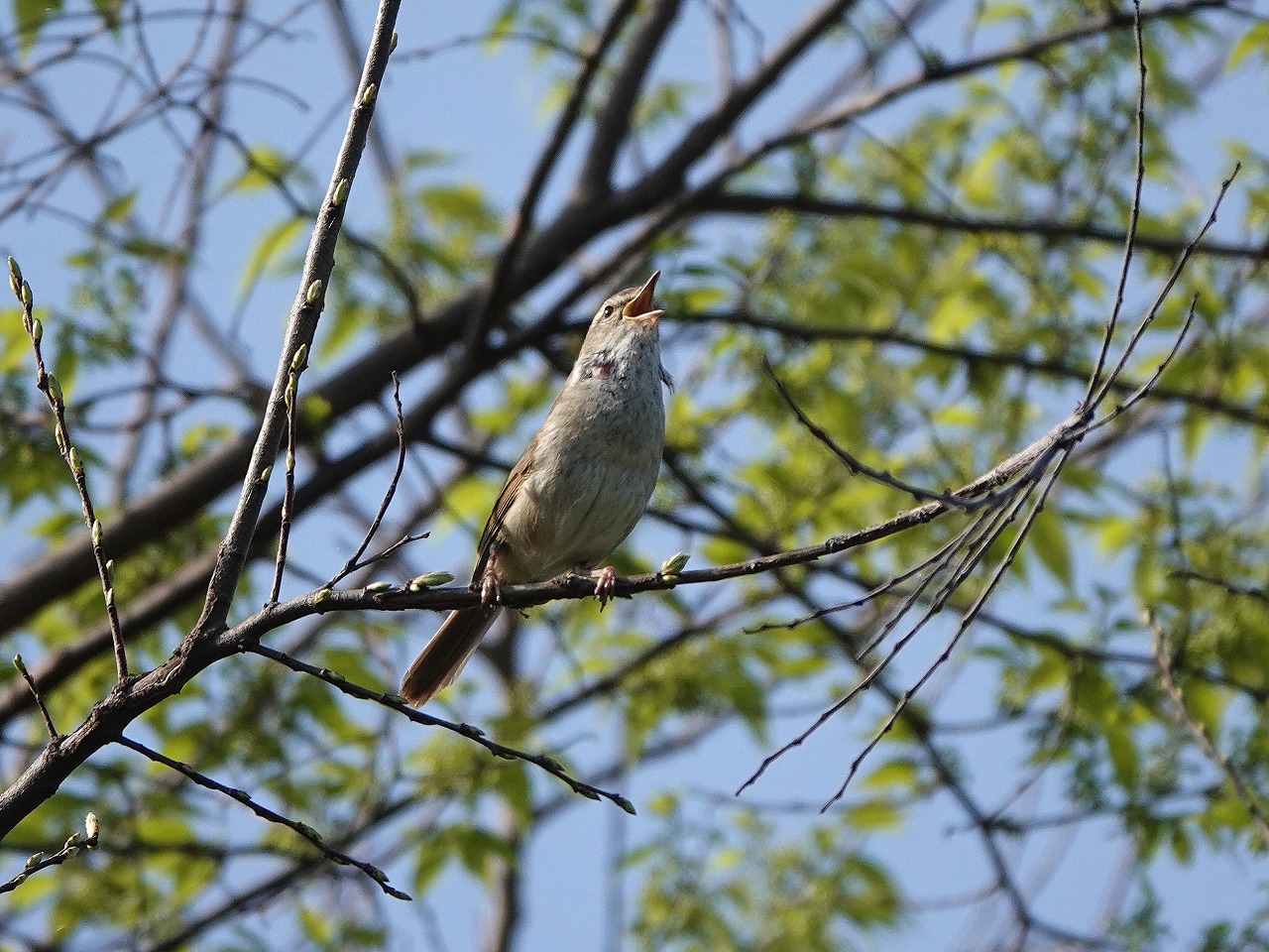このところ気になるのは、ウグイスの上達がストップしていて、「ホ-ホケキョ(語尾下がり)」ではなく「ホーホキョキッ(語尾上がり)」にしか聞こえない。そして隣の縄張りの別オスも同じ「ホーホキョキッ」で右へ倣えか左へ倣えか知らないが同じ歌声を披露している。練習開始から2ヶ月程度は「ぐぜり鳴き」という言葉で各種の下手くそな鳴き方が総称されているがもう5月も終ろうとしているのにこれでいいのか? 大きなお世話ではあるものの伝統を大事にしてほしいものだ。