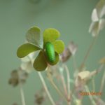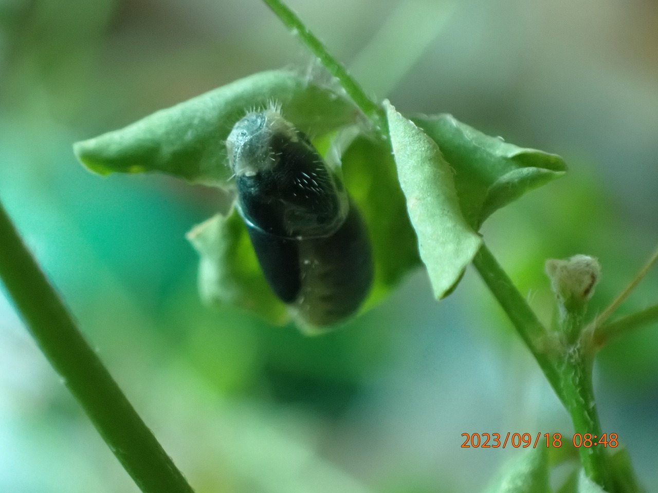 別の個体、こちらは食べ残していたカタバミの葉で蛹となっていた。