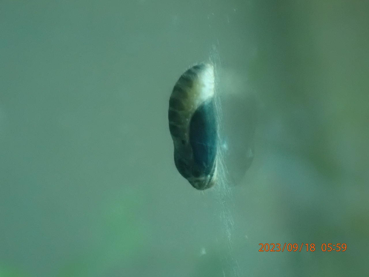 羽化直前の中が透けてきた蛹(別角度から)。