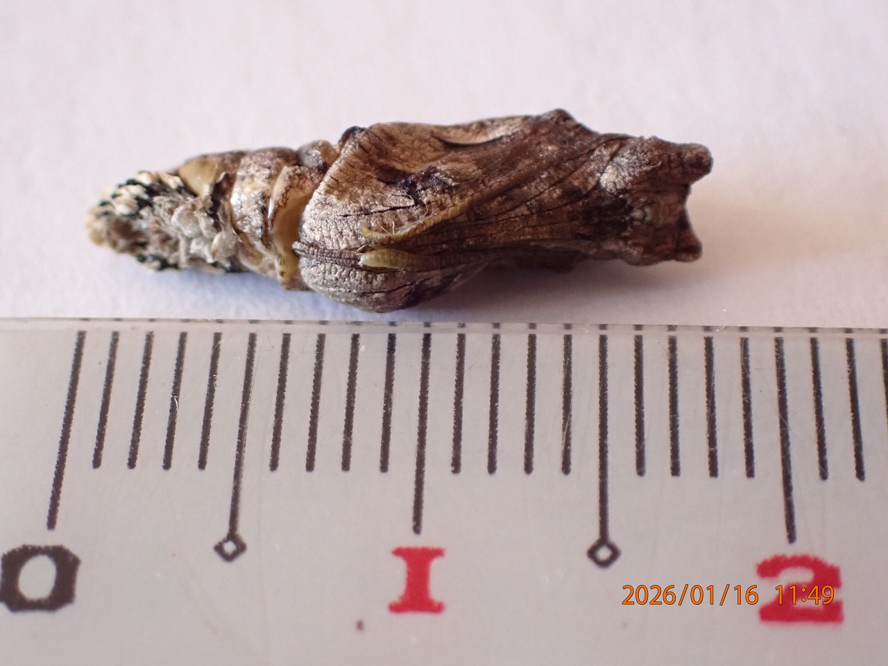 残念なことに・・・ 2026年1月16日 最終更新日時 : 2026年1月16日 MiyagawaNaoto 先日、この季節に何とか蛹にまでなれたアゲハの幼虫なのですが、残念なことに今朝見ると黒ずんで死んでいました。成長が著しく遅れていたこともありますが、やはり体のどこかに異常があったのでしょうか。 (Henk) 参考 蝶図鑑 アゲハ